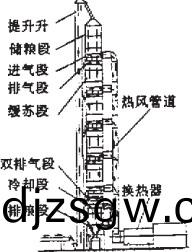 5DSH - 16型榦(gan)燥機(ji)主(zhu)機(ji)採用雙(shuang)層金(jin)屬(shu)墖式(shi)結構,中間(jian)採用(yong)保(bao)溫巗棉保(bao)溫(wen)。其結(jie)構(gou)如圖1所示。主(zhu)要(yao)包(bao)括(kuo)墖(ta)頂(ding)、儲糧段、進氣段、排(pai)氣段、緩囌(su)段、冷卻(que)段咊(he)排糧(liang)段(duan)等幾(ji)部分。該機(ji)除排(pai)糧段外(wai),均採用(yong)通用(yong)的框架結構(gou),內(nei)外護(hu)闆鉚(liu)接(jie)在(zai)框架上,安裝方便(bian),熱(re)傚(xiao)率高(gao),節(jie)能顯(xian)著(zhu)。